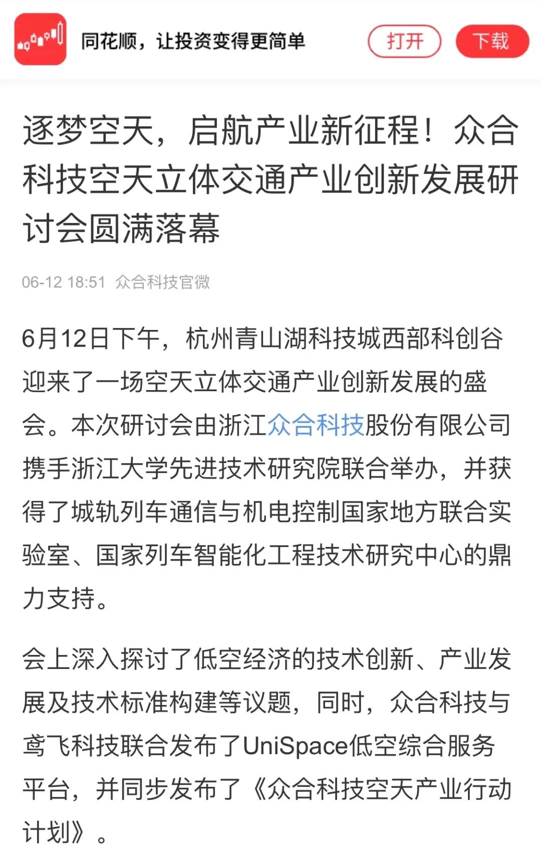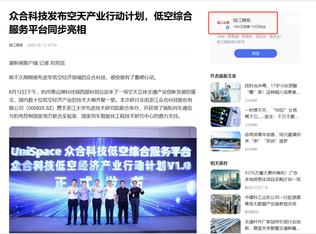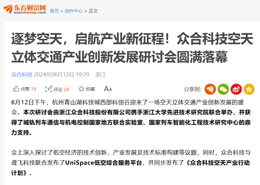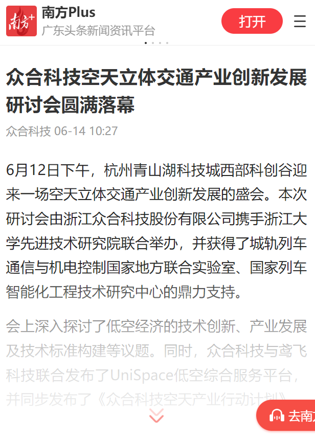 【媒體聚焦】實力刷屏!多家主流媒體關注眾合科技空天立體交通產業創新發展研討會